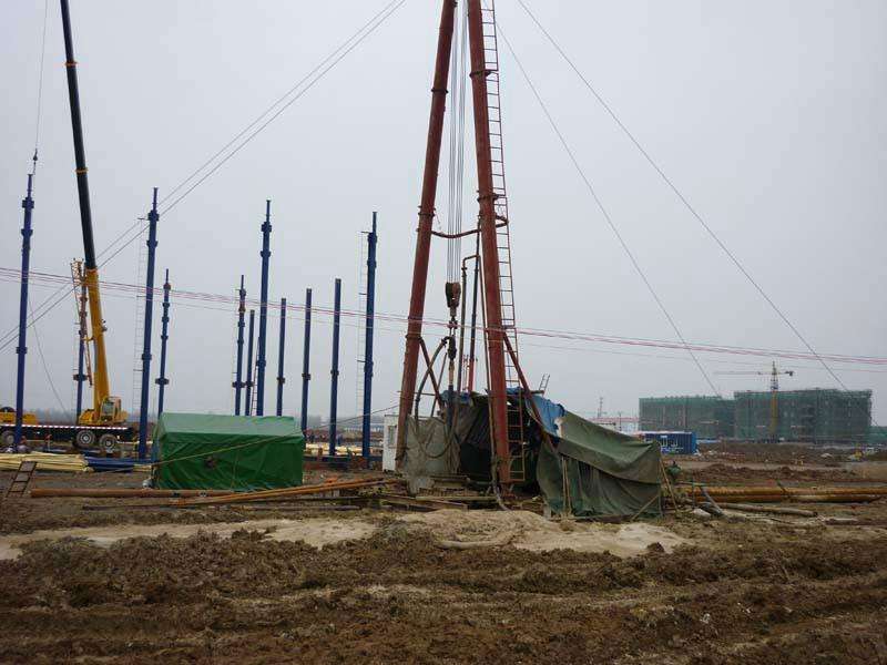 2。直接填放法:井管下管完成後,使用帆布及麻绳封住井管,直接填放 砾石,并以清水冲刷,加速砾石下沉速度,但适当填放速度一小时约8-10M3。